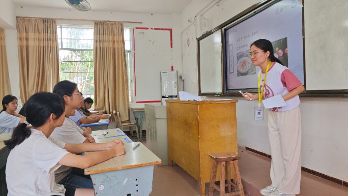圖為主講人羅穎向?qū)W生介紹夏至習(xí)俗。通訊員 羅穎 供圖