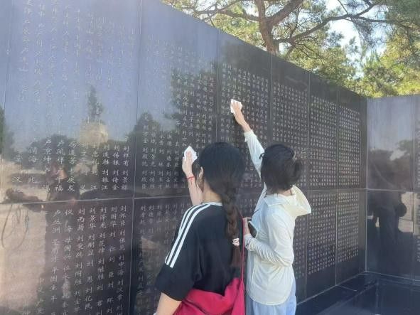 在英烈館“英名墻”前,團隊成員自發(fā)拿起抹布,輕輕擦拭鐫刻著“劉”姓烈士姓名的墻面。劉杉杉同學輕聲念出一個個陌生卻莊嚴的名字,感慨地說:“他們可能是我的同鄉(xiāng)、同族,甚至可能是我的祖輩。”這一刻,歷史不再是課本上的文字,而是血脈相連的記憶,是激勵我們前行的精神火種。