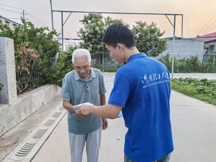 當(dāng)日下午,實(shí)踐團(tuán)12名成員整裝從河南理工大學(xué)出發(fā),歷經(jīng)半小時(shí)車程抵達(dá)河南省焦作市孫村。在村口大槐樹下,幾位閑聊的村民見實(shí)踐團(tuán)成員背著行囊、手持筆記本走來(lái),便詢問(wèn)其來(lái)意。團(tuán)隊(duì)成員回應(yīng):“老鄉(xiāng)們,我們是河南理工大學(xué)的學(xué)生,此次前來(lái)是想了解大家對(duì)無(wú)人機(jī)打藥、撒肥等技術(shù)的看法。”