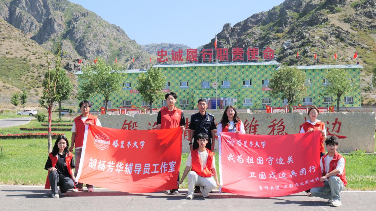 圖為實踐團成員在八十一團塔拉夏溝邊境警務(wù)站與站長合影留念 (攝/李鑫)