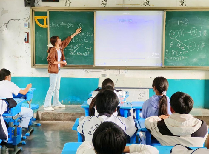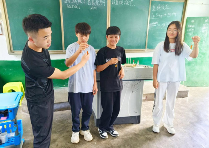 實(shí)踐團(tuán)的成員們調(diào)查問卷、談訪交流,實(shí)際分析舊營(yíng)鄉(xiāng)中學(xué)科普教育資源數(shù)字化現(xiàn)狀與教學(xué)設(shè)施等情況作為教學(xué)活動(dòng)的第一手材料,針對(duì)性的進(jìn)行靈活調(diào)整課程和方法,更充分有效地引導(dǎo)學(xué)生探索未知,也剛好的走近孩子們,走以踔厲奮發(fā)、走向初心使命……支教隊(duì)員們發(fā)揮專業(yè)特長(zhǎng),開設(shè)了計(jì)算機(jī)基礎(chǔ)、科普實(shí)驗(yàn)等音體美一系列豐富的課程。