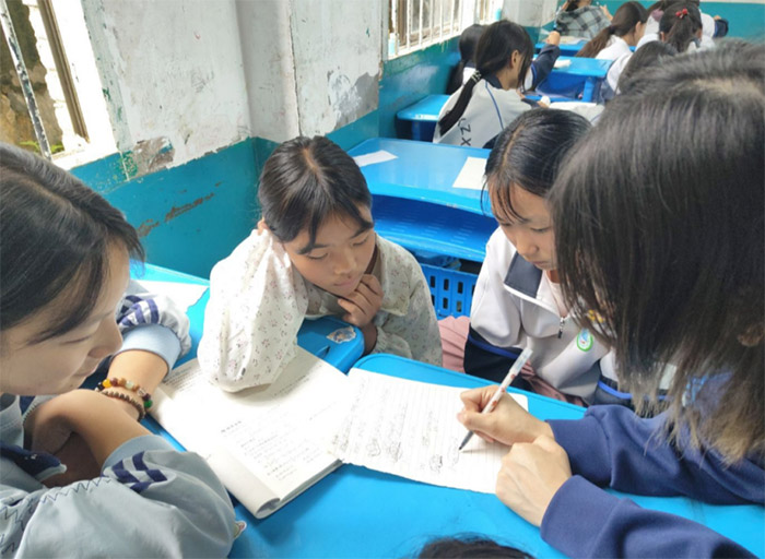 實(shí)踐團(tuán)成員根據(jù)實(shí)際,針對(duì)基礎(chǔ)知識(shí)薄弱、注重教學(xué)節(jié)奏的把控,學(xué)習(xí)興趣不高等問題,采取了多種教學(xué)方法,提高教學(xué)樂趣性,通過小組合作學(xué)習(xí)、集思廣益,引導(dǎo)小組成員間主動(dòng)分享想法,鼓勵(lì)提出不同觀點(diǎn),共同驗(yàn)證等方法來深化對(duì)知識(shí)的理解,讓合作不僅是任務(wù)分工,更成為彼此啟發(fā)、共同進(jìn)步的學(xué)習(xí)過程。