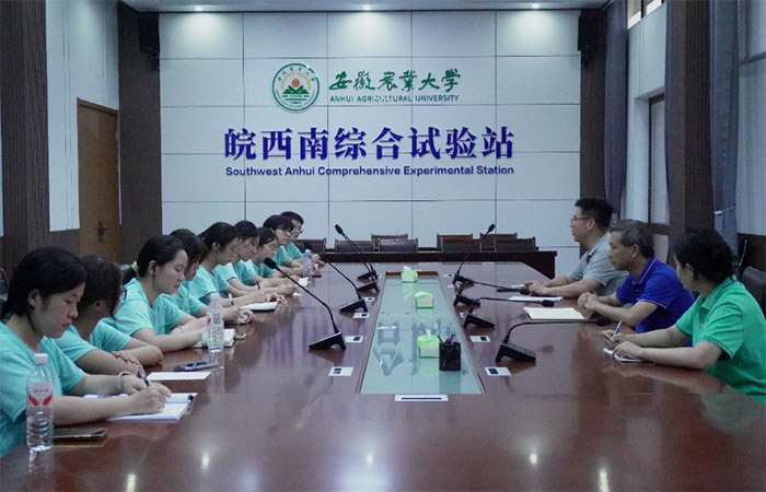 團隊與皖西南綜合試驗站站長徐支青開展座談,他詳細介紹了懷寧縣"雙十雙百"產(chǎn)業(yè)發(fā)展目標以及校地合作方面,試驗站與安農(nóng)大共建藍莓產(chǎn)業(yè)聯(lián)盟,培育出"皖藍莓1號"等新品種,并派駐專家團隊駐點攻關(guān)深加工技術(shù)難題。通過"縣問校答"機制,已解決氣候影響、果品保鮮等關(guān)鍵問題,推動產(chǎn)業(yè)鏈向果酒、果汁等高附加值領(lǐng)域延伸。徐支青表示,試驗站將持續(xù)發(fā)揮"科技引擎"作用,通過產(chǎn)學(xué)研深度融合,為鄉(xiāng)村振興提供可復(fù)制的"懷寧方案"。