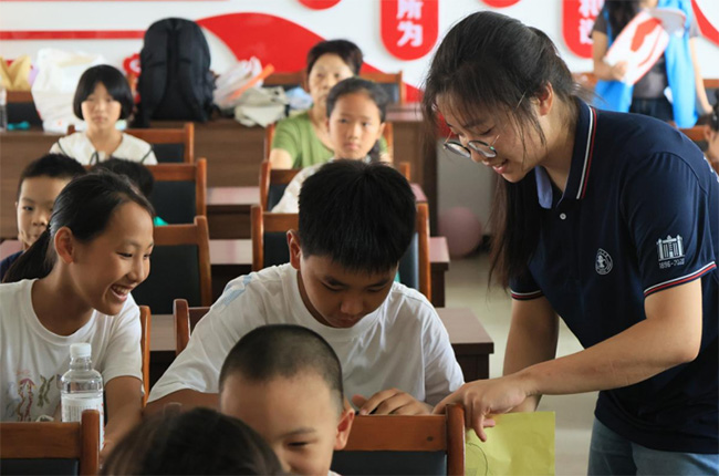 圖3:實踐團成員為積極回答問題的小朋友頒發(fā)獎品