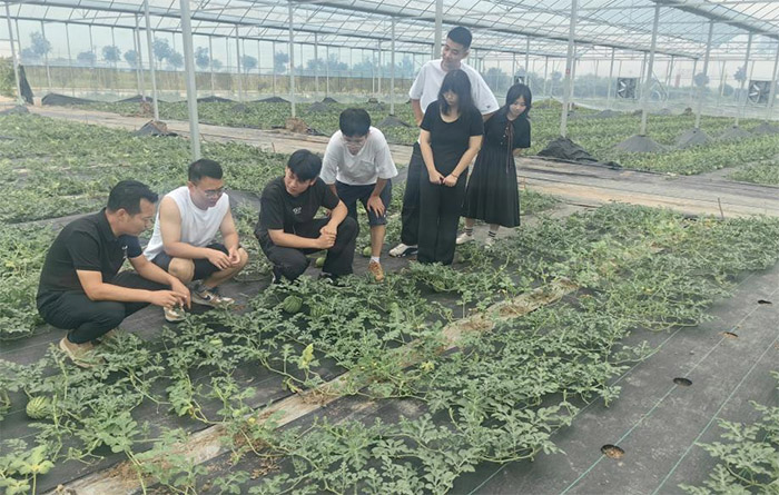 習近平總書記指出,“農(nóng)業(yè)出路在現(xiàn)代化,農(nóng)業(yè)現(xiàn)代化關鍵在科技進步”。在鄭董事長的帶領下,實踐團走進現(xiàn)代化種植基地,鄭董事長介紹,基地不僅引種優(yōu)質瓜果豐富市場品類,更積極探索洪山菜薹與瓜類作物的輪作及生態(tài)共生技術體系,正在計劃引進水肥一體化智能灌溉、環(huán)境實時監(jiān)測等現(xiàn)代農(nóng)業(yè)技術應用,為實現(xiàn)洪山菜薹精細化、周年化生產(chǎn)提供核心支撐。