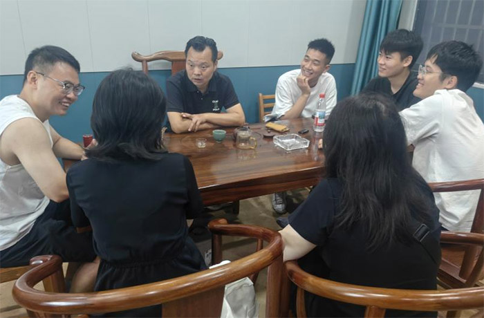實踐團隊成員一行與公司董事長鄭清華進行深入座談,聚焦洪山菜薹全產(chǎn)業(yè)鏈中的關鍵技術瓶頸展開討論。鄭董事長指出,目前產(chǎn)業(yè)最大痛點集中于“保鮮期短、季節(jié)性供應”等采后環(huán)節(jié)。隊員們結合果樹采后生物學、冷鏈物流及栽培生理等專業(yè)背景,提出多項切實建議,實現(xiàn)了從課堂知識到產(chǎn)業(yè)一線的“產(chǎn)學研用”深度融合。