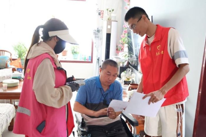 圖為實(shí)踐團(tuán)隊(duì)員與第三師圖木舒克市167社區(qū)訪談居民對電信詐騙的了解度。李雨蒙 供圖